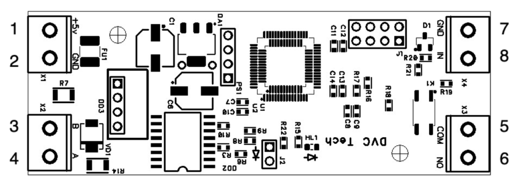 Design: board for installation into a DIN-rail enclosure (2 DIN modules).